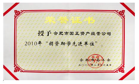 近日,在市總工會舉辦的2010年度“金秋助學”活動儀式上,我公司榮獲2010年度“捐資助學先進單位”榮譽稱號,這也是我公司連續(xù)三年獲得該稱號。