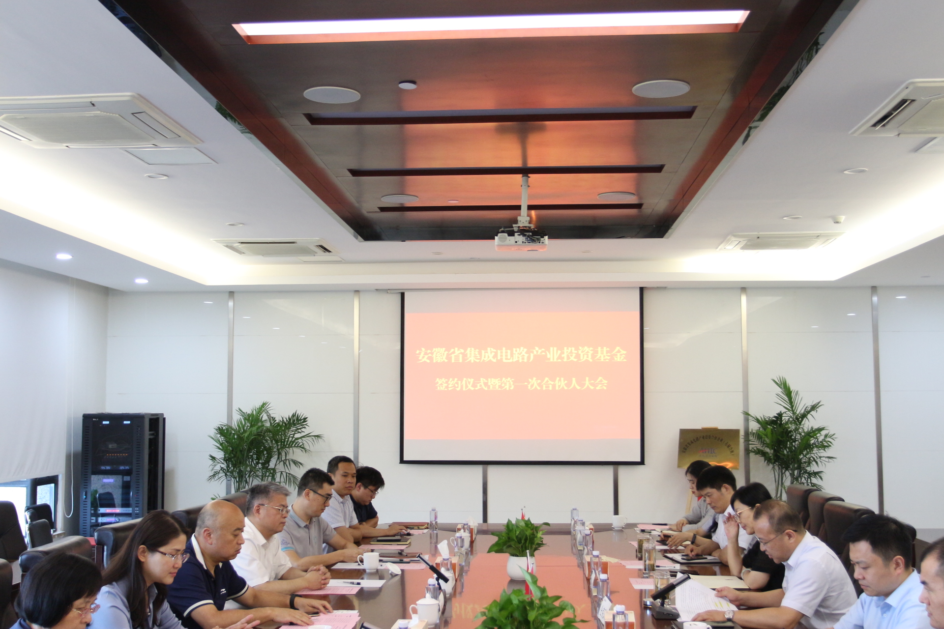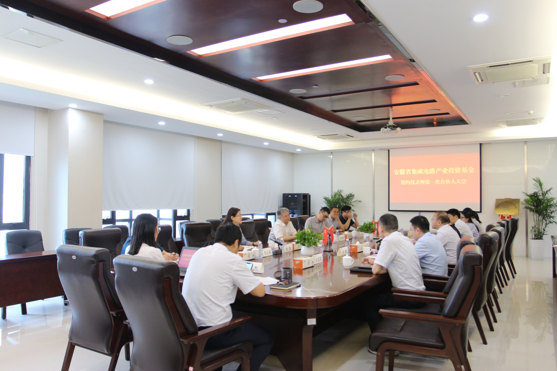 9月23日下午,安徽省集成電路產(chǎn)業(yè)投資基金簽約儀式暨第一次合伙人大會在國正公司16樓會議室隆重召開,安徽省國控資本董事長黃海波、總經(jīng)理徐靜、產(chǎn)投集團(tuán)董事長雍鳳山、總會計(jì)師錢元美、合肥市經(jīng)開區(qū)投促局副局長馮磊、海恒資本董事長李步星等領(lǐng)導(dǎo)出席會議,會議由國正公司董事長仝克琪主持。