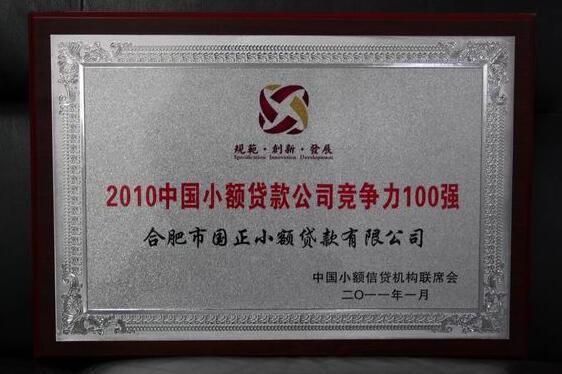 從剛剛閉幕的首屆中國(guó)小額信貸機(jī)構(gòu)聯(lián)席會(huì)議高峰論壇傳來(lái)喜訊,我公司旗下合肥市國(guó)正小額貸款有限公司(以下簡(jiǎn)稱“國(guó)正小貸公司”)憑借出色的業(yè)績(jī)和良好的口碑,從全國(guó)千余家小貸公司中脫穎而出,一舉獲得“2010中國(guó)小額貸款公司競(jìng)爭(zhēng)力100強(qiáng)”榮譽(yù)稱號(hào)。