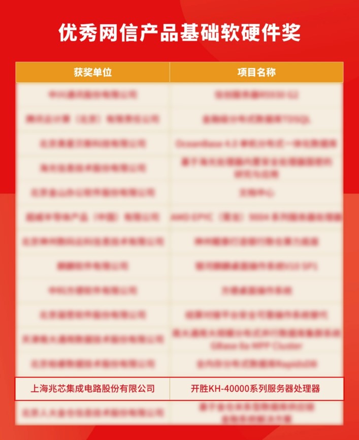 近日,我司已投企業(yè)上海兆芯集成電路股份有限公司(以下簡(jiǎn)稱“兆芯”)自研的新一代開勝KH-40000系列服務(wù)器處理器成功榮獲2023年“金鼎獎(jiǎng)”-優(yōu)秀網(wǎng)信產(chǎn)品基礎(chǔ)軟硬件獎(jiǎng)項(xiàng)。