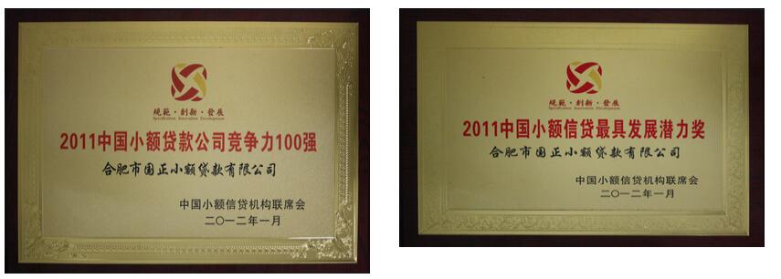 2011年,國正小貸公司累計為合肥市區(qū)“小、個、農”群體發(fā)放貸款35億元,解決了諸多中、小、微型企業(yè)資金短缺的燃眉之急,有效彌補了銀行無法顧及和覆蓋的信貸需求。憑借出色的經營業(yè)績、良好的社會形象和金融創(chuàng)新舉措,國正小貸公司獲得了領導和專家的一致認可,再度躋身全國百強,并獲“最具發(fā)展?jié)摿Κ劇?,彰顯了該公司省內一流、全國領先的行業(yè)龍頭地位。